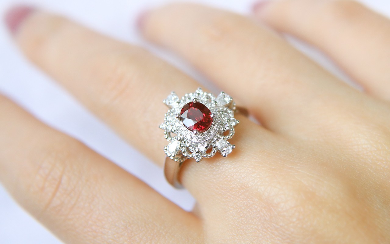 红宝石戒指所散发出来的暖暖的红色热情和活力给女性增添女王范儿,与女性洁白的肤色相配更加透露出浓浓的女人味儿。