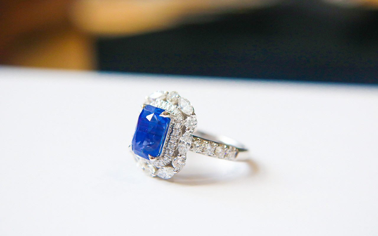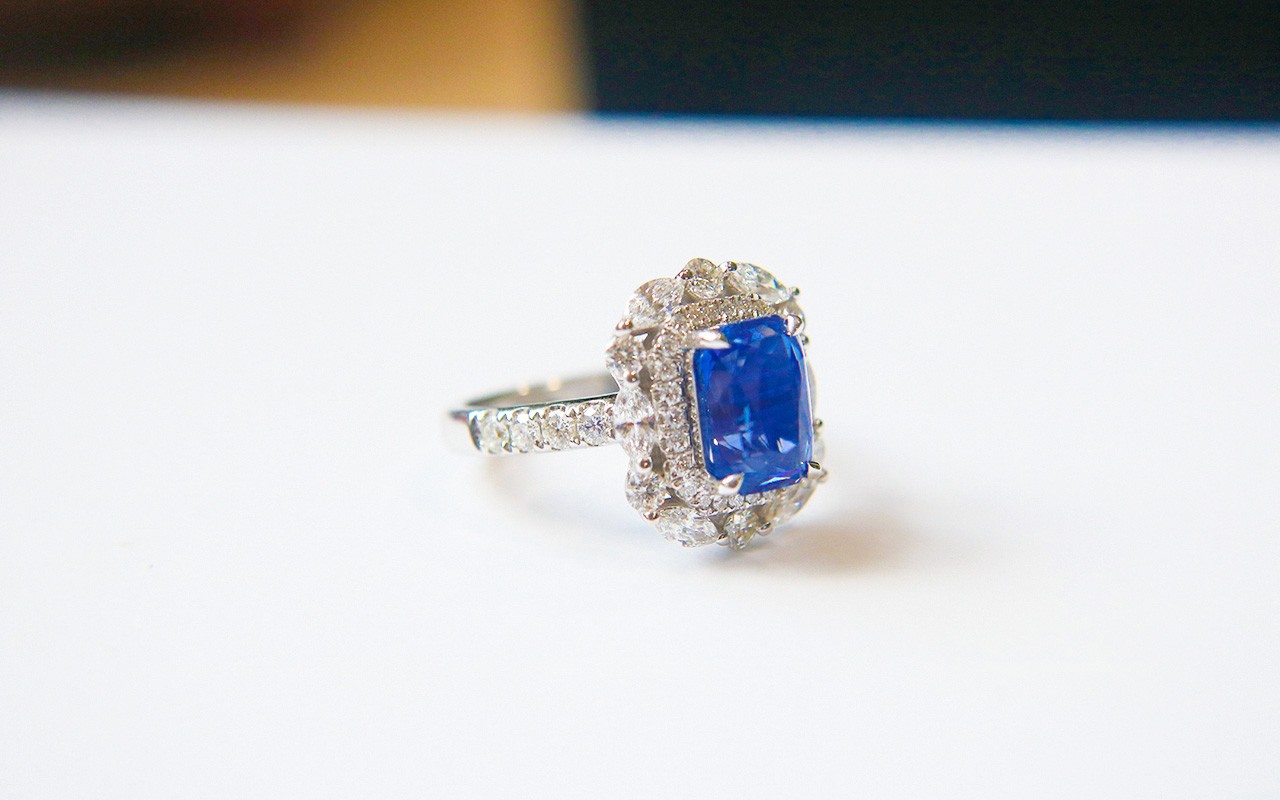 无烧蓝宝石钻石戒指L918,主石3.63ct