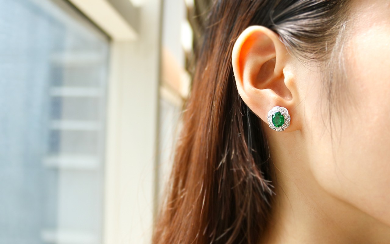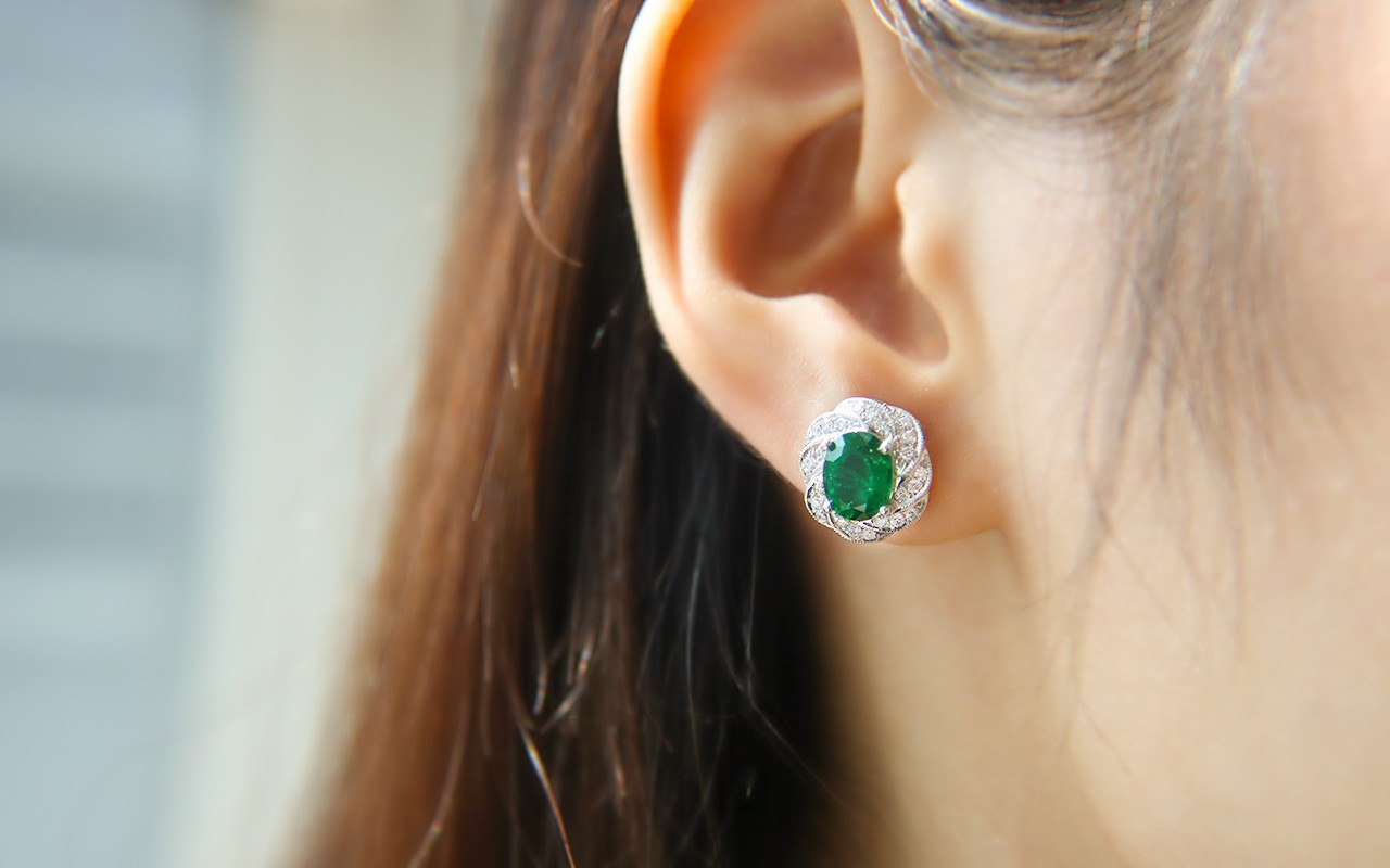 18K祖母绿耳钉,主石两粒共计2.84ct