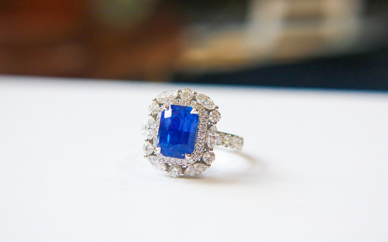 无烧蓝宝石钻石戒指L918,主石3.63ct