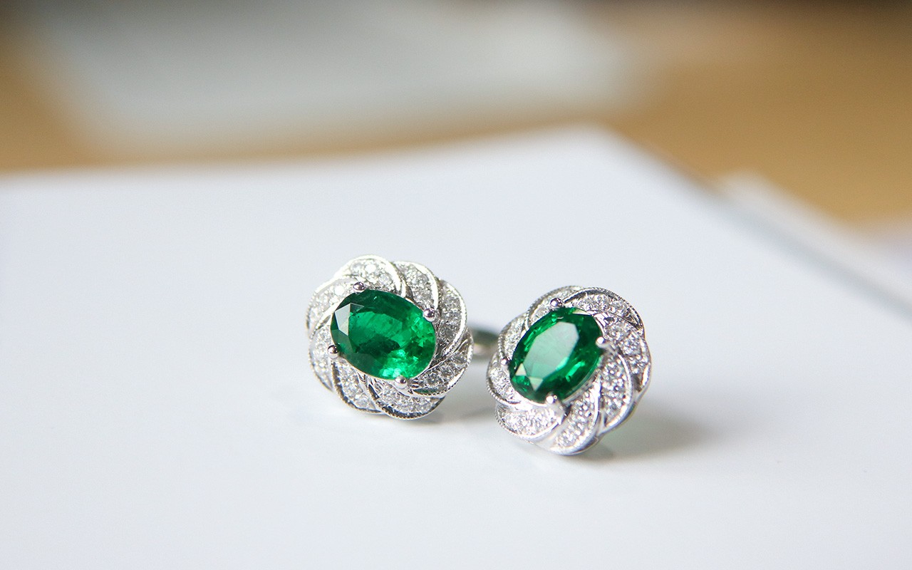 18K祖母绿耳钉,主石两粒共计2.84ct
