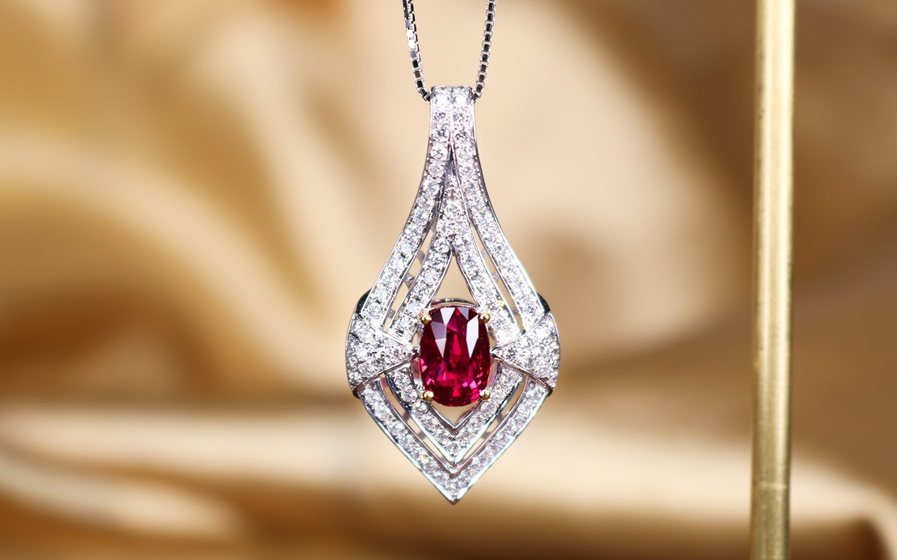红宝石是因其热情的色彩备受人们的喜爱,红宝石的英文名称为Ruby,源自拉丁文,意思是红色。属于刚玉族矿物,三方晶系。红宝石质地坚硬,硬度仅在金刚石之下。因其成分中含铬而呈红到粉红色,含量越高颜色越鲜艳。血红色的红宝石最受人们珍爱,俗称“鸽血红”。