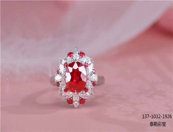 红宝石是三方晶系,在不同的角度下观察,有不太明显的二色性,硬度9(仅次于钻石),通常净度不是很好,有比较多的内涵物或裂纹,晶体不会感觉很透彻,呈玫瑰红色调的比较多,大红且透明度高的红宝石(天然)非常罕见,且红宝石有一些处理方式需要辨别的,尖晶石的处理方式少些但是合成尖晶石较为多见。