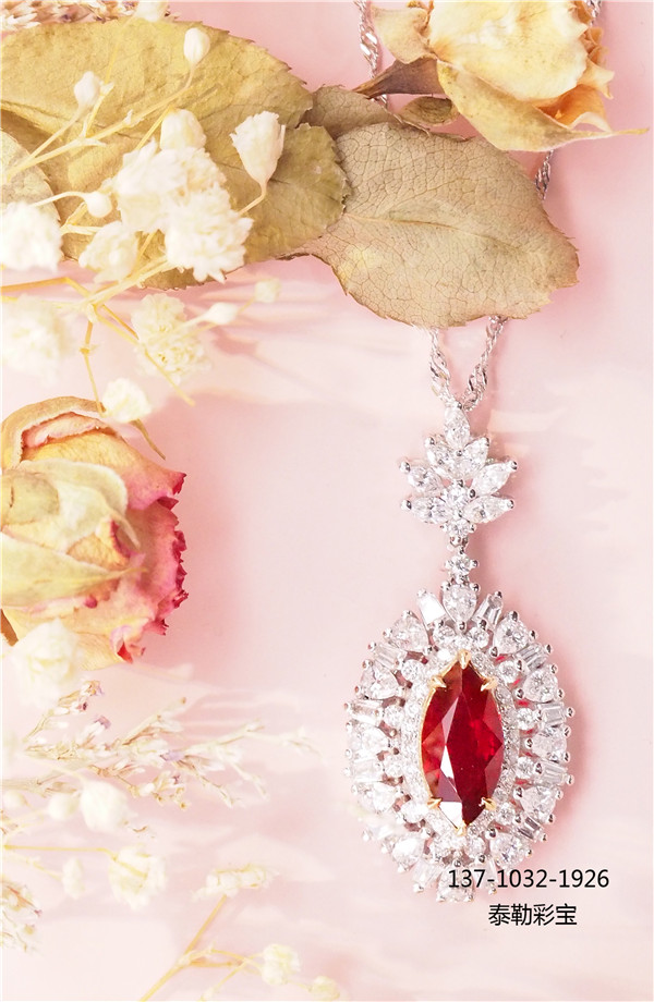 红宝石吊坠热情洋溢的外观内,也贮藏着无尽的温柔韵味。在光的照射下,红宝石正面所表现的颜色是非常纯正的。你可以轻轻转动你手中的宝石,如果在光的照射下可以看到很多小火苗在闪烁的话就证明这个是高品质的红宝石。